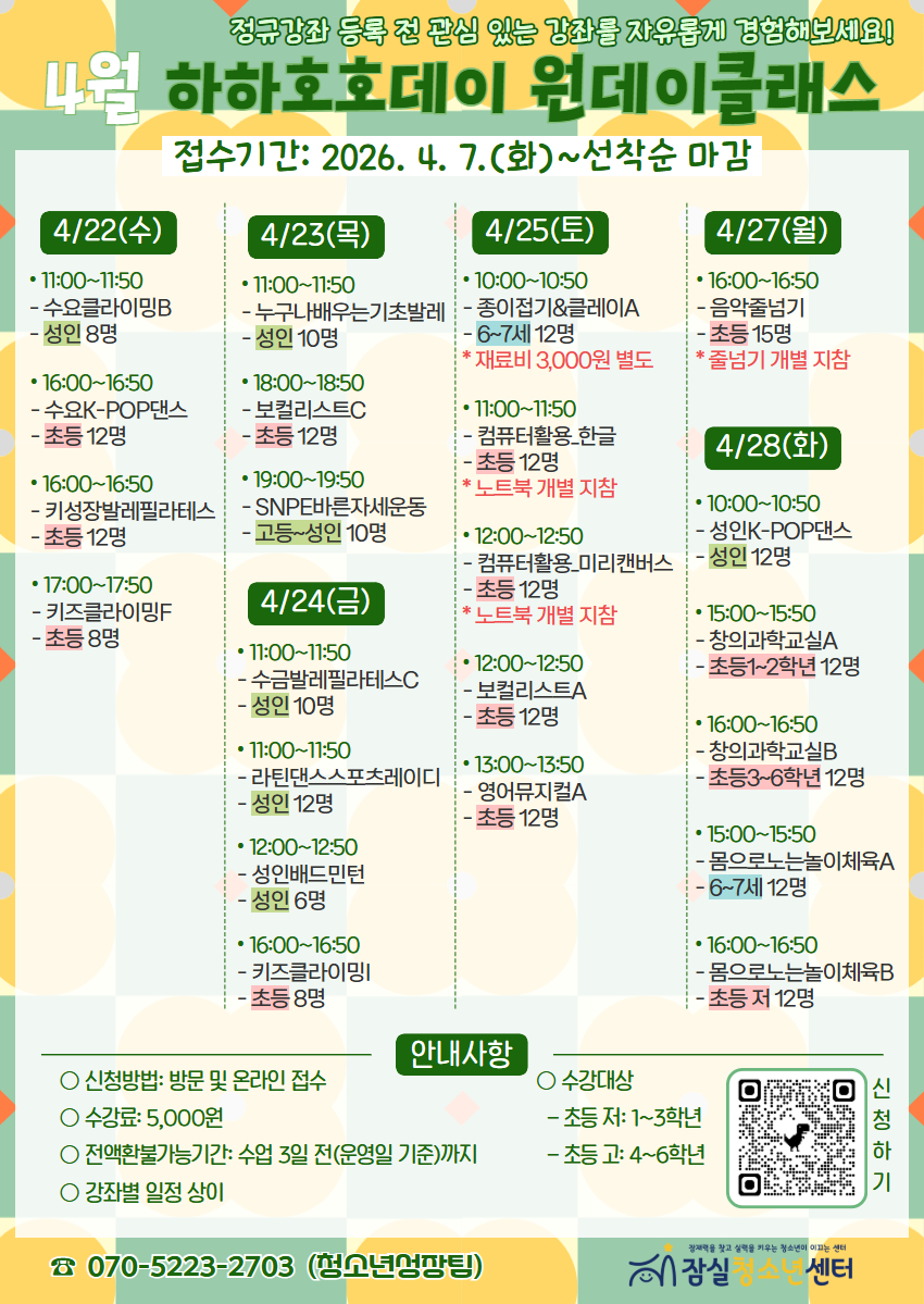 2026년 4월 잠실청소년센터 안전점검표 공지